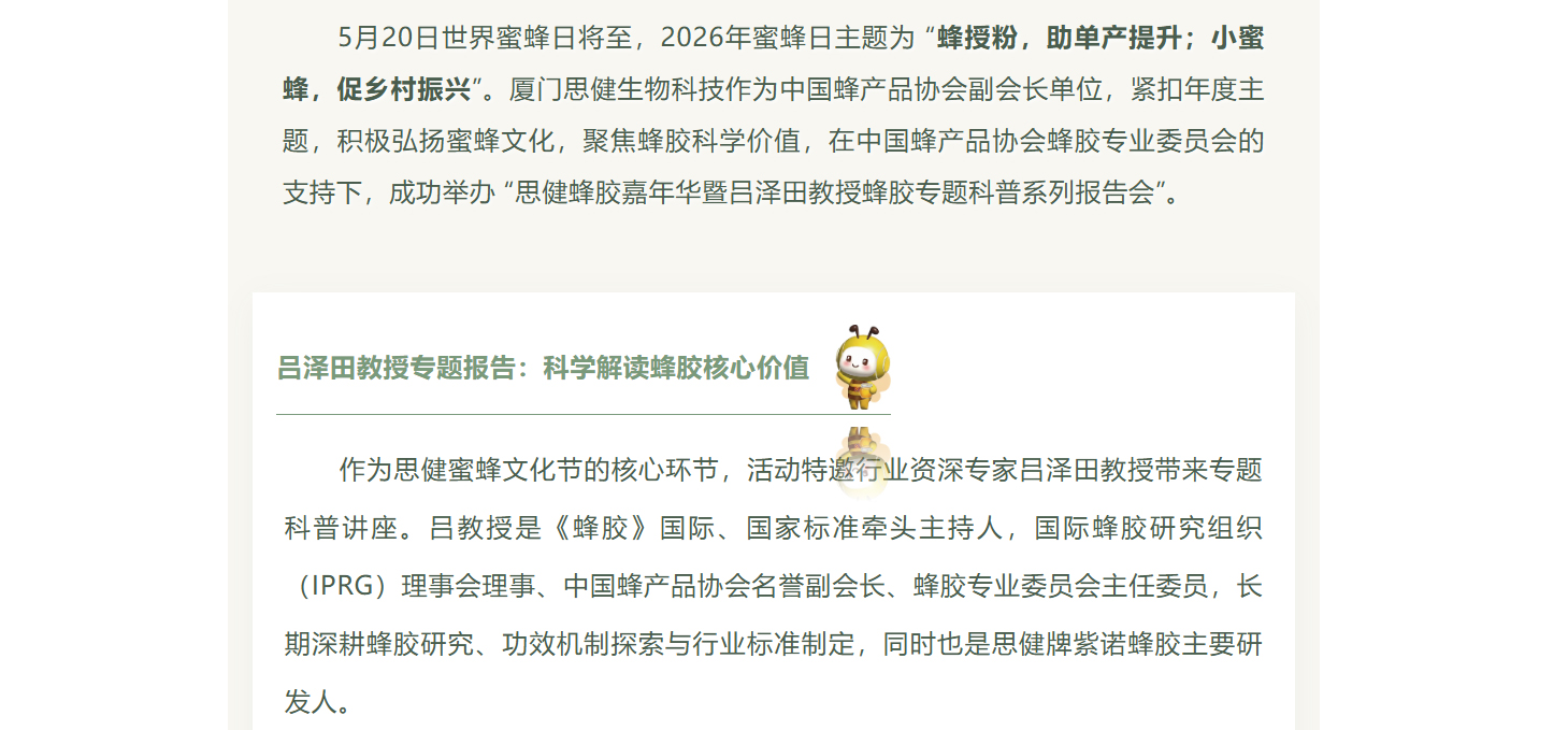 2026思健蜜蜂文化節(jié)盛大啟幕!呂澤田教授親臨,共赴蜂膠健康盛宴!